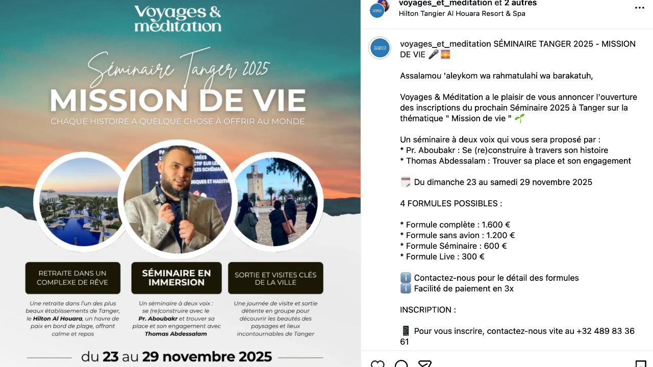 Par cette inscription, vous pourrez assister de chez vous aux lives du séminaire de Tanger 2025 qui aura lieu du 23 au 29 novembre 2025. Vous aurez également droit aux replays pour une durée de 7 ans dans votre espace membre.
